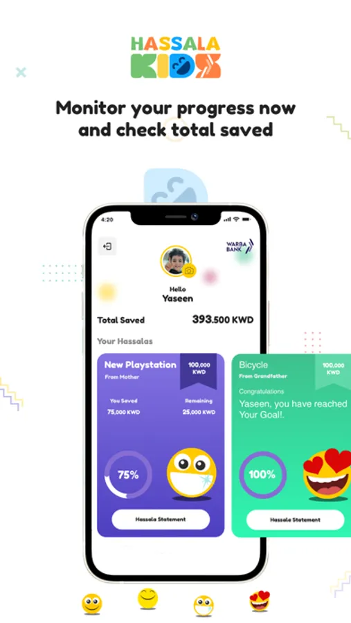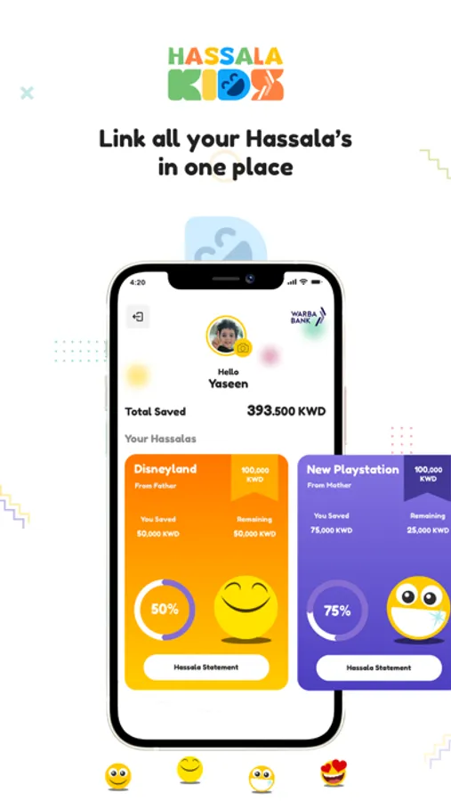 Hassala is Smart Service that will help clients achieve their kids saving target goals.