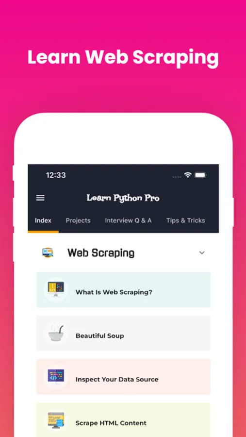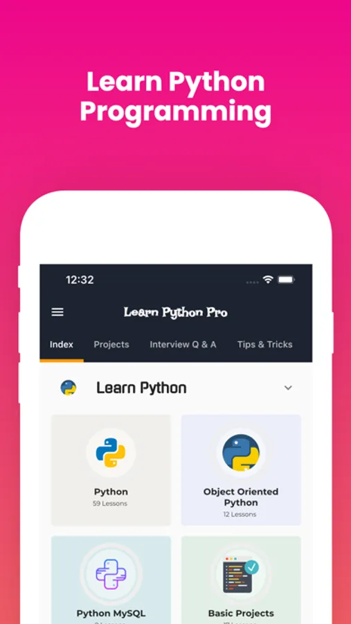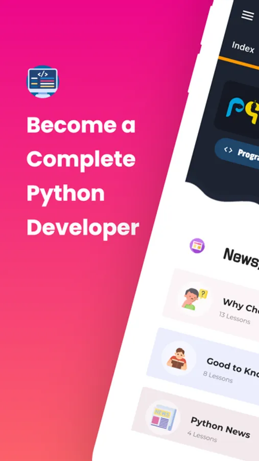 Our learn python programming app provides the best study materials for all the beginner and Expert level programmers who want to learn the python programming language and want to build strong fundamentals to crack any job interview in this language.