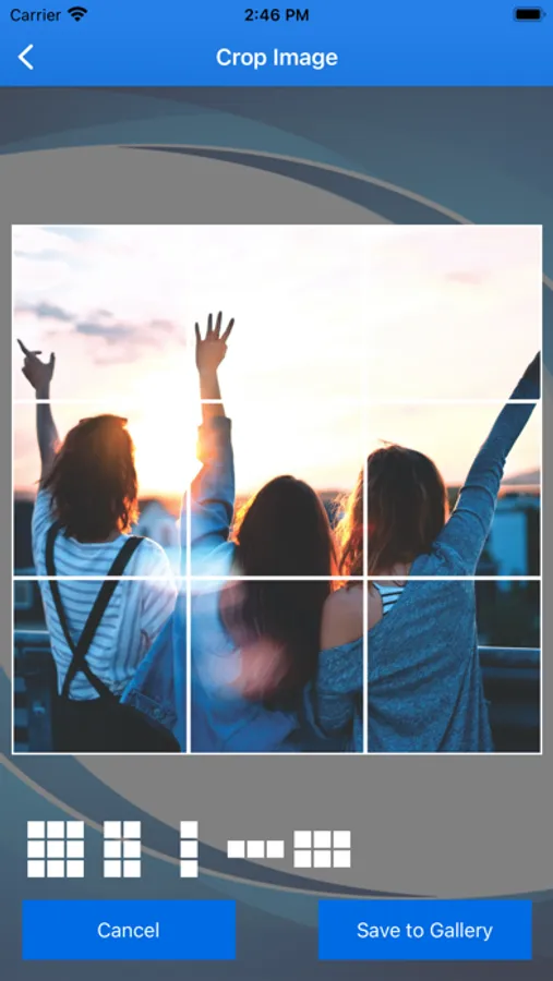 It just takes a two easy steps: Pick a photo or video from your gallery that you want to split, select the ratio you require and tap the save to gallery button. The app will instantly split your picture or video in a matter of seconds. Share the photo to instagram from within the app.