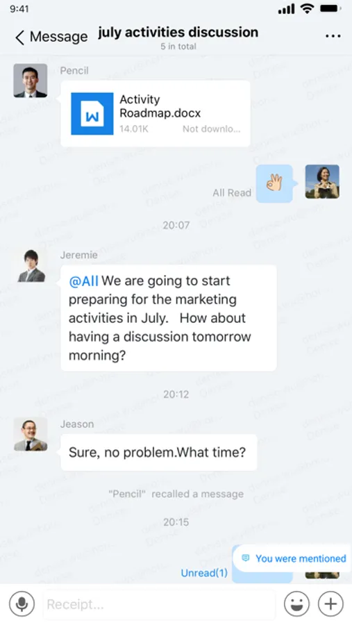 - Team work is built on conversation, keep team focus on work context and make team more productive.