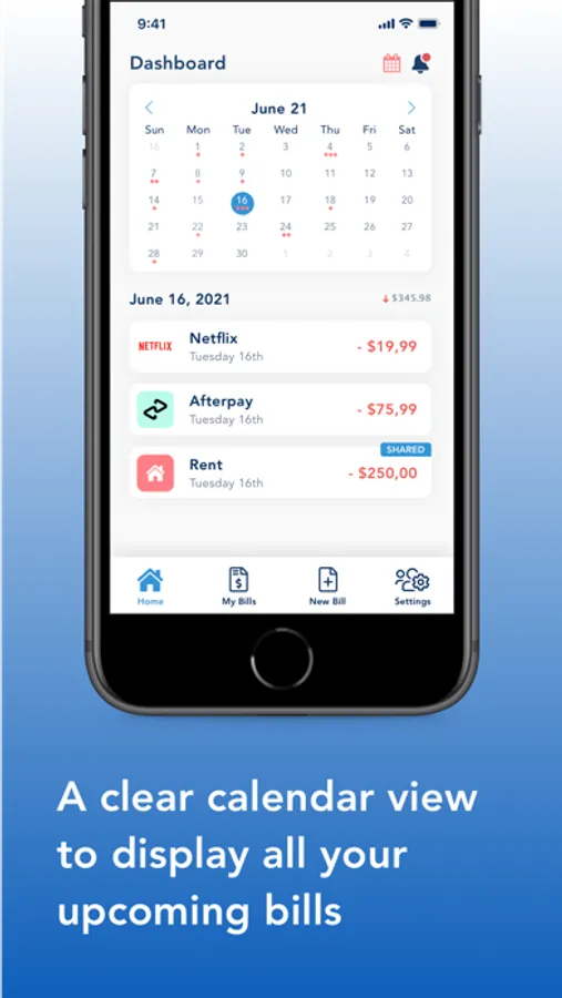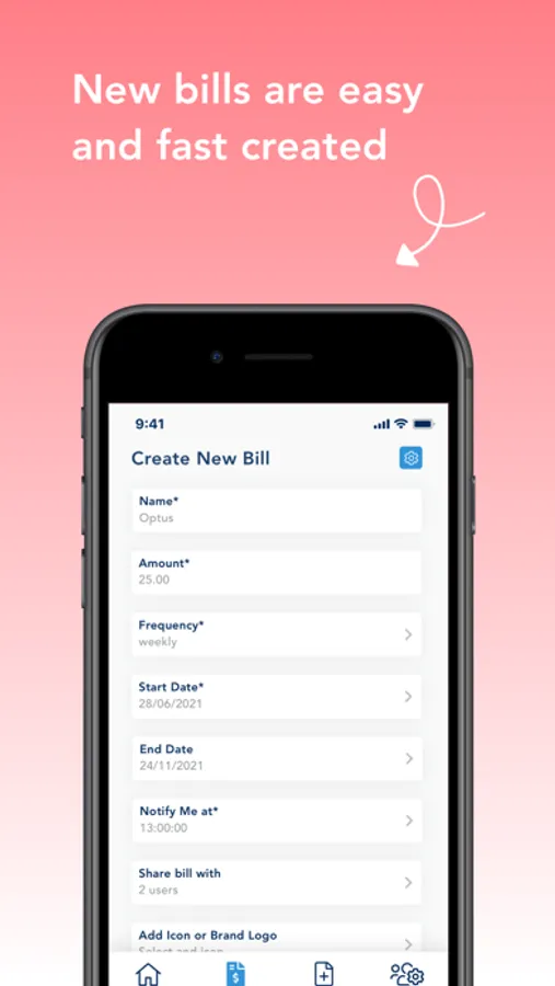 Create a bill in minutes and start receiving a notification when the bill is due.