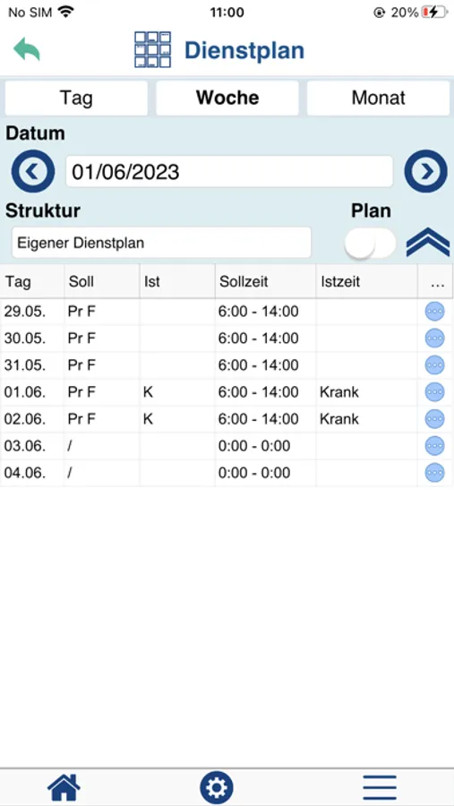 Die Anzeige von deinen Dienstplänen, ob Tages-, Wochen- oder Monatsplänen, steht übersichtlich zur Verfügung.