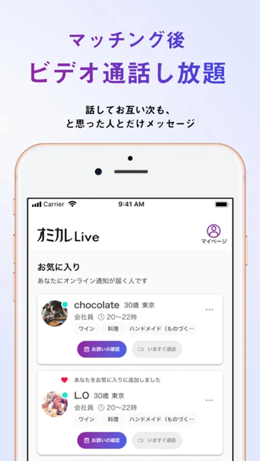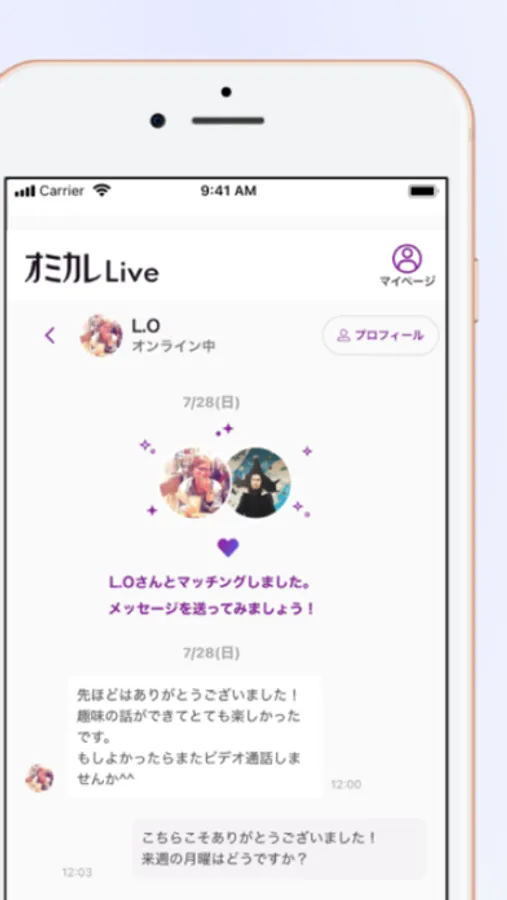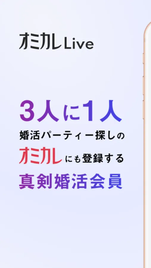 マッチングアプリ「オミカレLive」は、オンライン婚活マッチングアプリです。