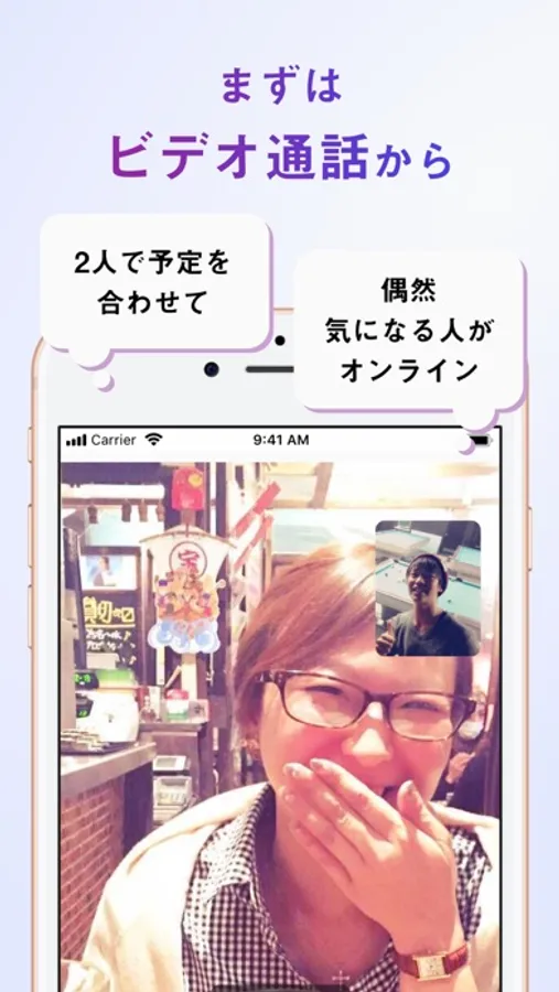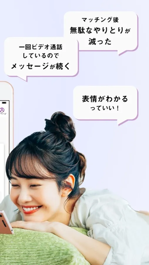 オンライン婚活マッチングアプリだから、いつでもどこでも好きな時間に自分のペースで婚活できます。ビデオ通話から始まることで、お相手の雰囲気、仕草で相性がわかる!