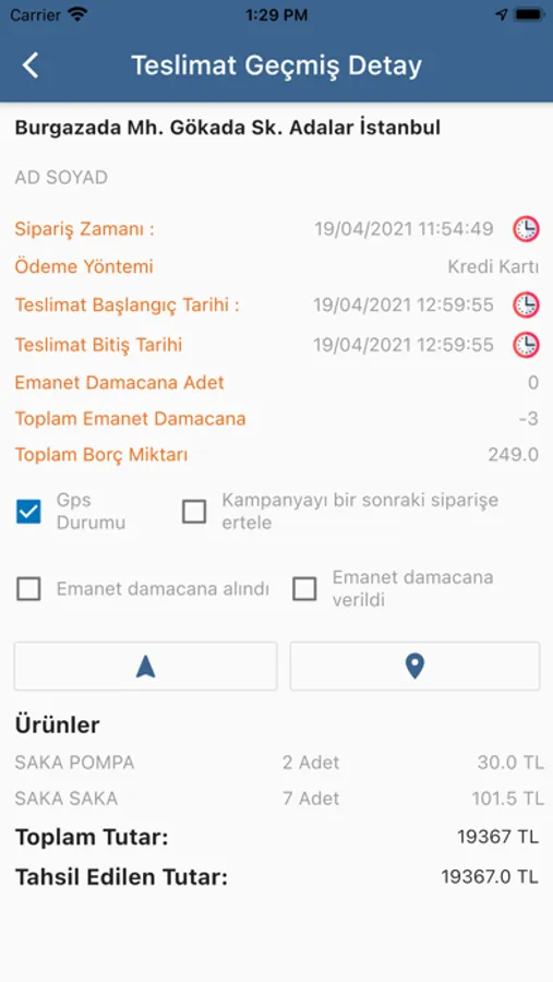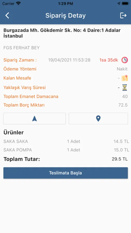 Saka Su Teslimatçı uygulaması, gelen siparişlerin liste olarak ve harita üzerinde konum olarak gösterildiği bir uygulamadır. Siparişlere ait detay bilgileri, harita üzerinde rota bilgisi, sipariş konumuna olan uzaklık, sipariş konumuna yaklaşık varış süresi gibi bilgiler edinilebilir. Siparişler teslim edildikten sonra teslim edilmiş siparişlere ait detaylar, ödeme yöntemine göre gruplanarak toplan yapılan satış miktarı bilgileri de ek olarak yer almaktadır.