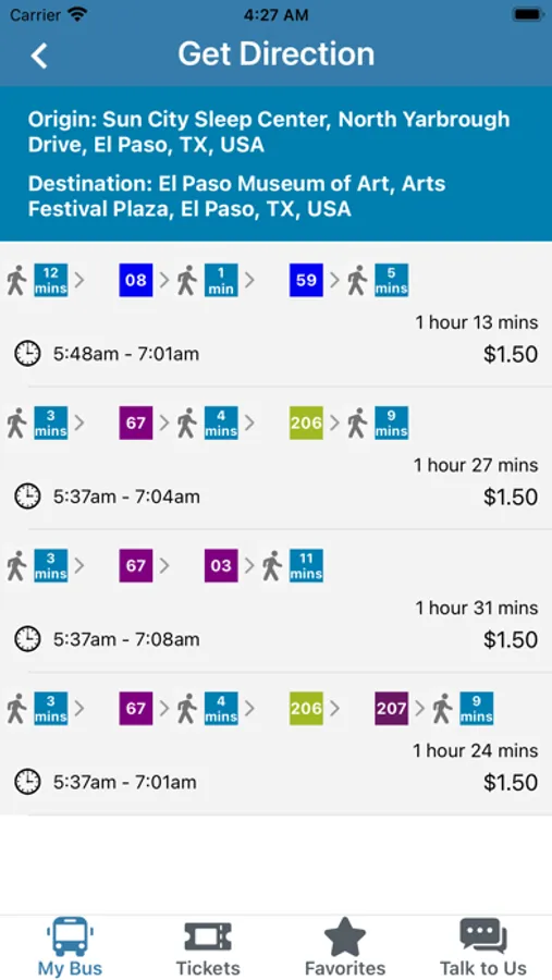 Plan, ride & connect with El Paso Sun Metro (Ride Sun Metro), using the official mobile app for bus travel in El Paso City. User-friendly features include Bus schedule, mobile ticketing options, and direct connection to customer service. In addition, the El Paso Ride Sun Metro Official Mobile App can be used to locate Bus Stops, Plan Trip and bookmark favorite Routes.