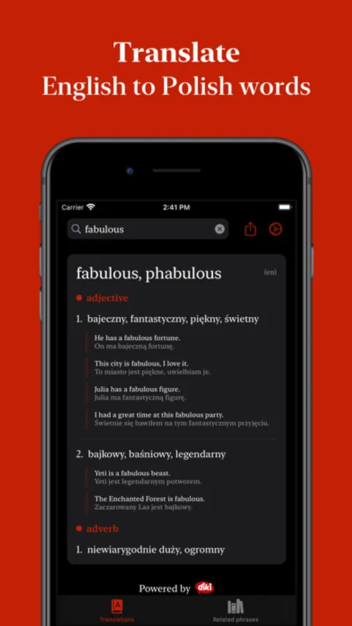 An unofficial application for www.diki.pl - one of the most popular and biggest English-Polish dictionaries.