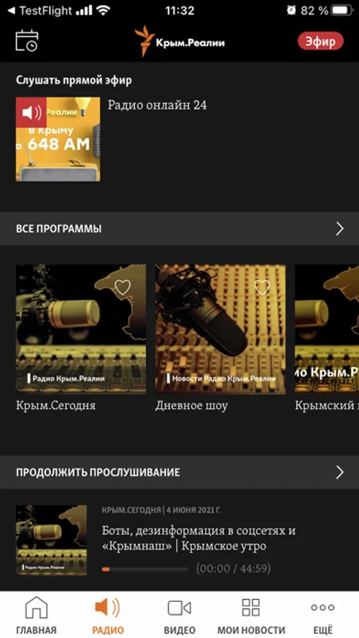 Бесплатное официальное мобильное приложение Крым.Реалии для вашего iPhone, iPad или iPod Touch. Крым.Реалии - оперативные бесцензурные новости и интересные истории из Крыма и всего мира, яркие крымские фото и видео cо всех уголков Крыма, прямые эфиры, ответственные обсуждения и открытые дискуссии на Радио Крым.Реалии. Симферополь, Севастополь, Ялта, Керчь, Евпатория, Феодосия, Бахчисарай, Белогорск, Алушта, Красноперекопск, Армянск, Джанкой, Саки, Ливадия, Форос, Алупка - чем живут сегодня эти и другие города и поселки, а также самые удаленные крымские села - в наших репортажах. Самые сложные темы и расследования, мнения политиков, экспертов, активистов, правозащитников и простых крымчан - это все вы найдете на Крым.Реалии. Мы - часть большой медиакомпании Radio Free Europe / Radio Liberty, которая более 70 лет работает в странах, где свободная пресса запрещена правительством или не создана полностью.