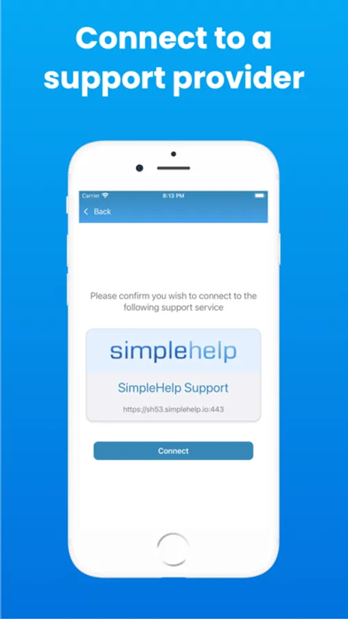 With Remote Support you can easily connect to any SimpleHelp support provider to get help and assistance with your mobile device.