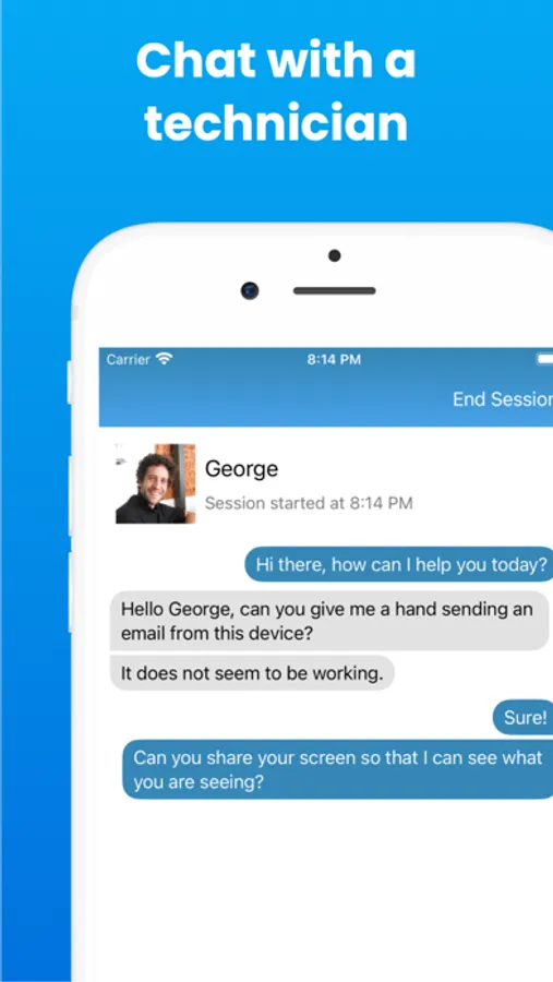 - Send chat messages and screenshots to quickly get assistance