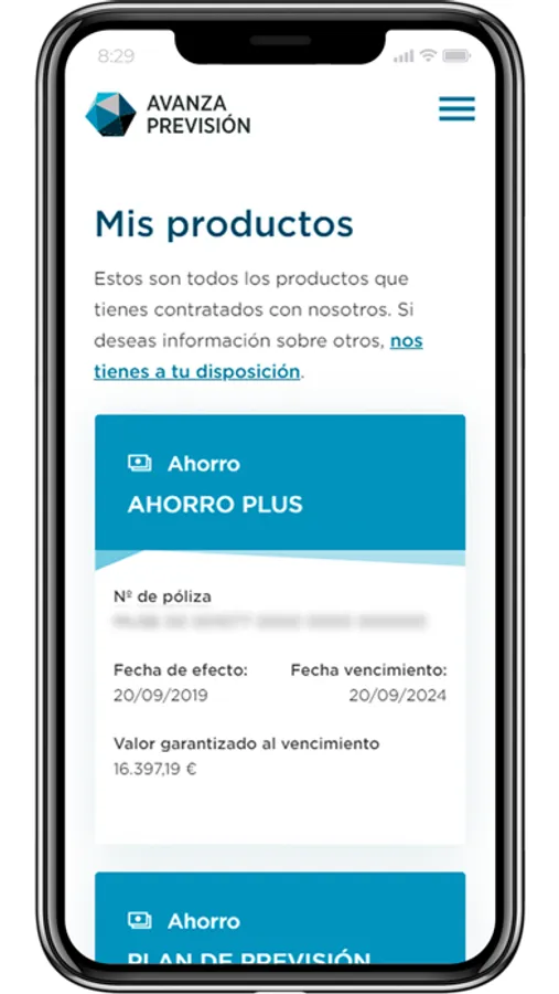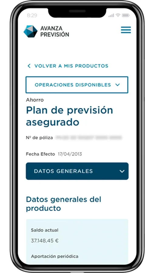 Avanza Previsión a través de esta aplicación facilita los siguientes servicios: