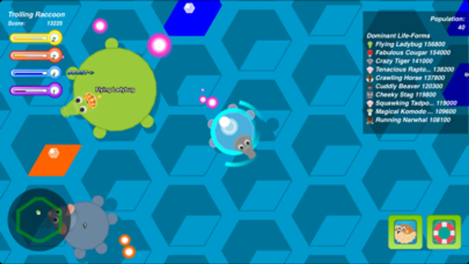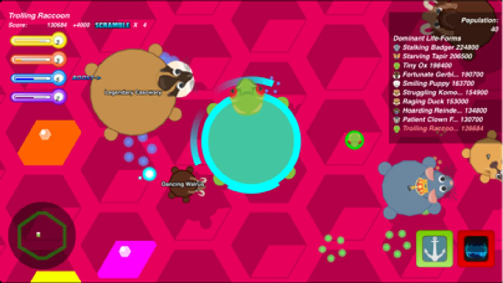 Crash into your opponents to tackle them! If you knock other Anumo out of bounds you get bonus Hangry coins and their Peptojel is up for grabs!