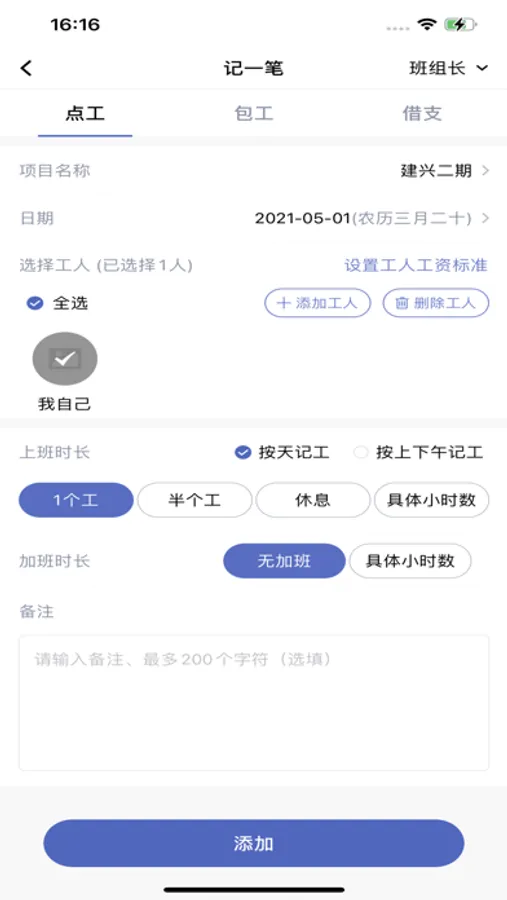 工地记工-记加班考勤工资记事本
