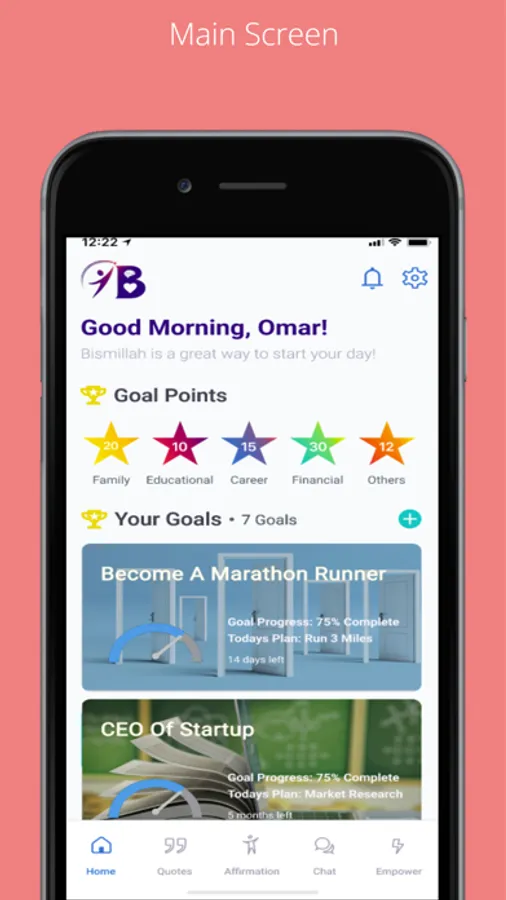 Goal Settings - Cultivate your vision for success by developing specific, measurable, achievable, relevant, and time-bound (SMART) goals with an Islamic approach. Understand your intentions and reasons for setting goals and keep your motivation strong. Utilize our goal tracker to manage all of your goals in one place and access voice affirmations for daily meditation and mindfulness.