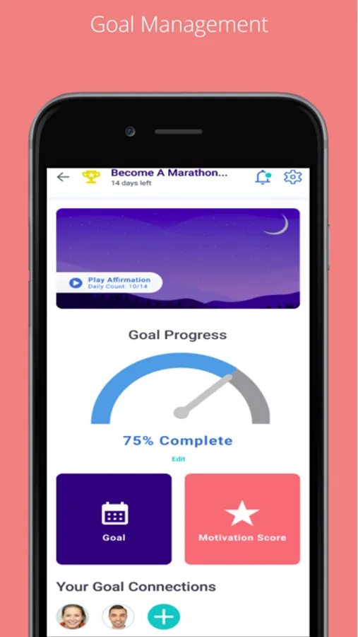 E-Coaching - The app serves as your accountability coach, giving you coaching recommendations throughout your day based on your goal motivation score until you achieve your goal and move on to the next.