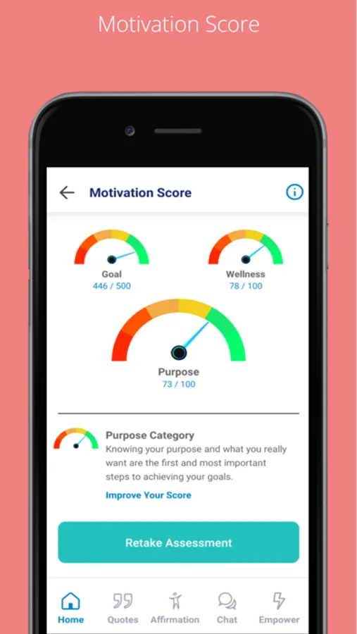 Motivation Score - Assess your motivation levels in real-time with our motivation score. Developed by psychiatrists and coaches, this assessment helps you identify areas you need to work on.