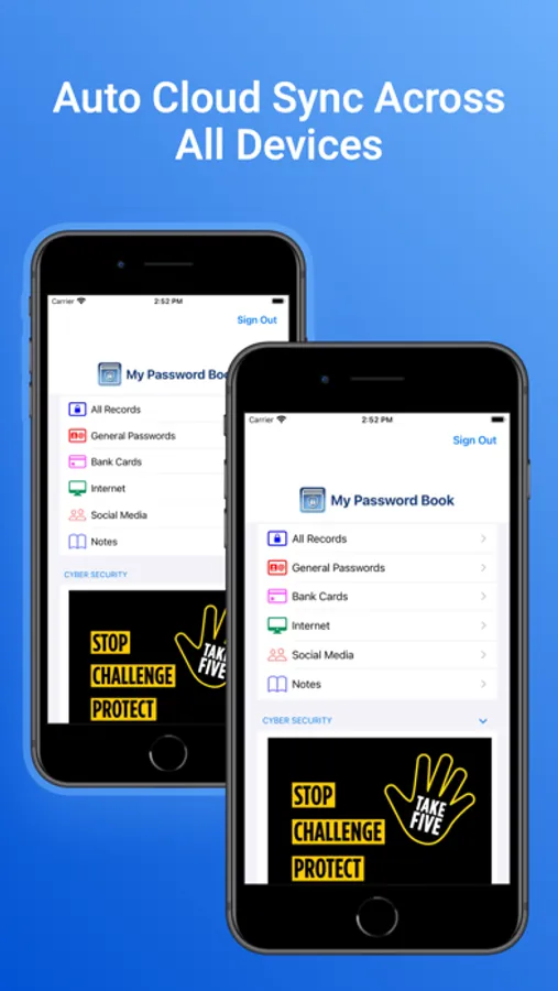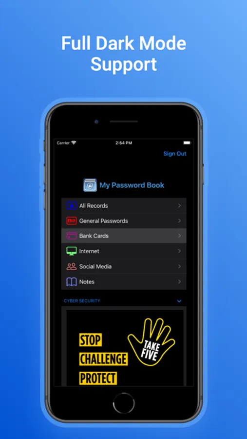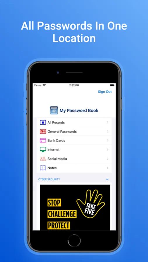 Cyber Security messages have been integrated into ‘My Password Book’ to remind users to ‘Take Five’ before disclosing any information. It’s time to move away from keeping your passwords on sticky notes or in a book by the side of your computer.
