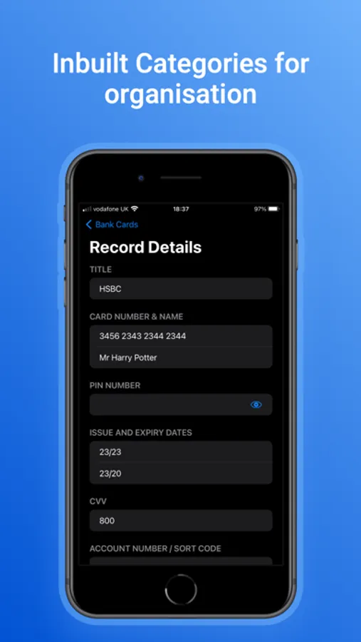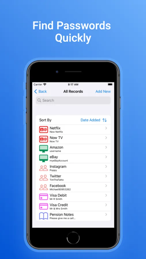 Organise passwords with built categories.
