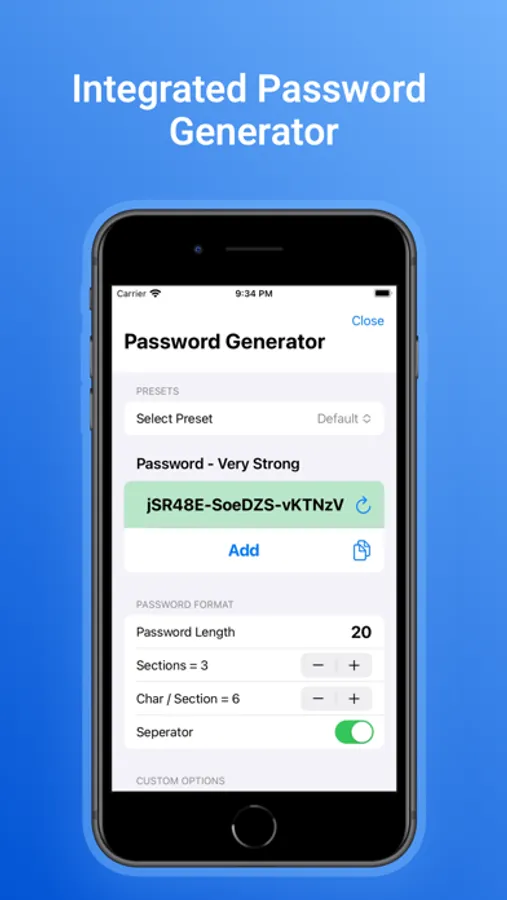 Fully integrated customisable password generator.