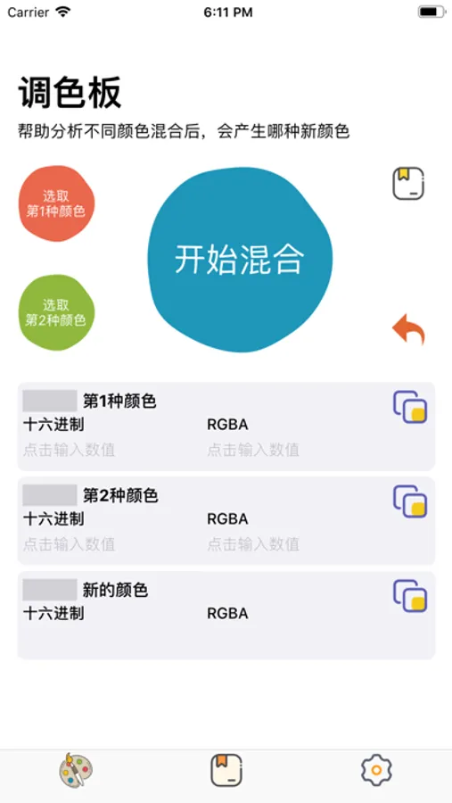 # 混合2种不同色彩(1:1),计算出新的色彩