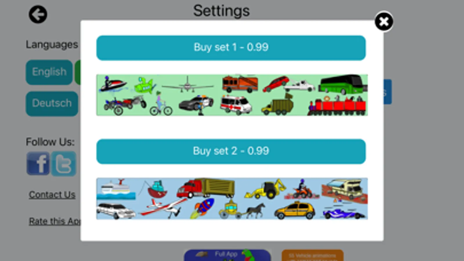Cute animations of 7 free vehicles with NO ADS! The vehicle name can be pronounced in one of 3 currently available languages (English, Spanish and Deutsch) and then the actual vehicle sound will play.