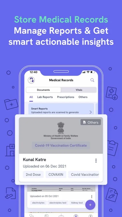 5. Medical Records & PHRs - Eka care is the most advanced Medical and Health records or PHRs app. Having medical & health records helps you to track your health history & early diagnosis of health issues. Eka care is the best Medical & health record & PHR app where you can store prescriptions, health & medical reports, vaccine certificates & more. You can create a Health profile for each of your family members & manage Medical & health records or PHRs of all members in a single app. These Medical records or PHRs can be easily shared with your doctor with a single click.