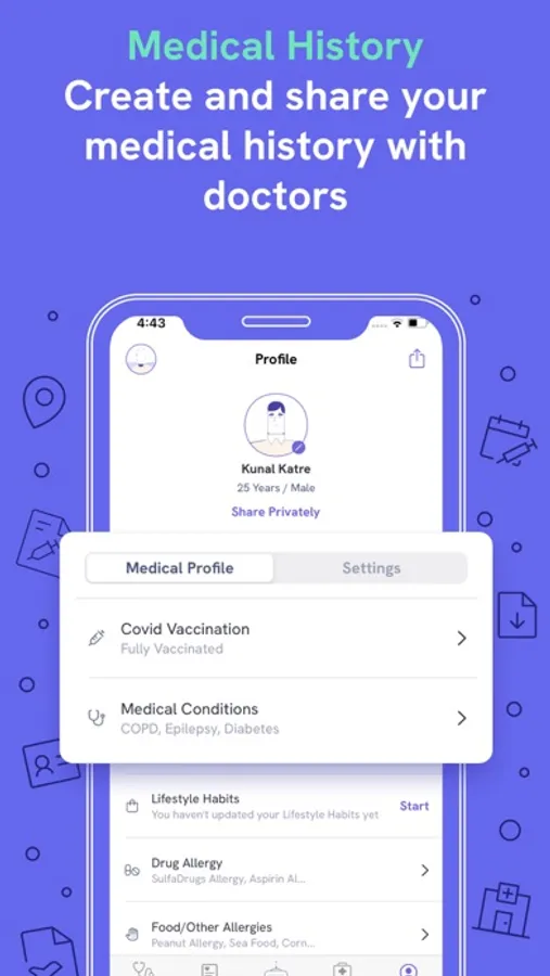 6. Vitals Monitor - You can now monitor vitals directly from your Medical & health records. Just upload your medical & health records and all the vitals in your medical record such as Blood pressure, Diabetes & sugar level, Cholesterol levels & more will easily be converted into date wise tracking for easy monitoring of your vitals.