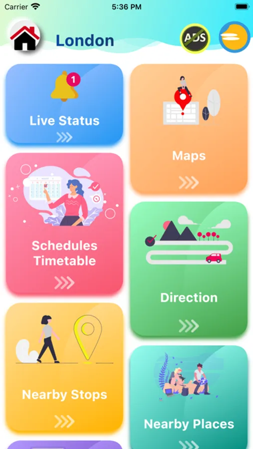Nearby Stops : Get to any destination faster with nearby stops of available public transport system with updates service status and schedules including, Tube, National Rail, Bus & more.