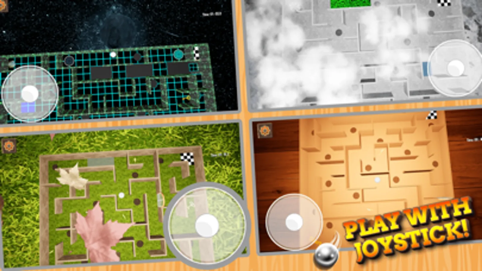 - Multiple control modes - With A Maze 3D, you can choose from different control modes and see what you find most enjoyable. You can navigate the ball by simply tilting your phone, dragging your fingers across the joystick, or swiping anywhere on the screen.