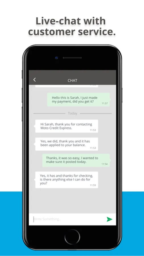 Make and schedule your Moto Credit Express payment in real-time. The Moto Credit Express App is the easiest way to make your payment, see your payment history, and chat with your provider. It's fast and easy.