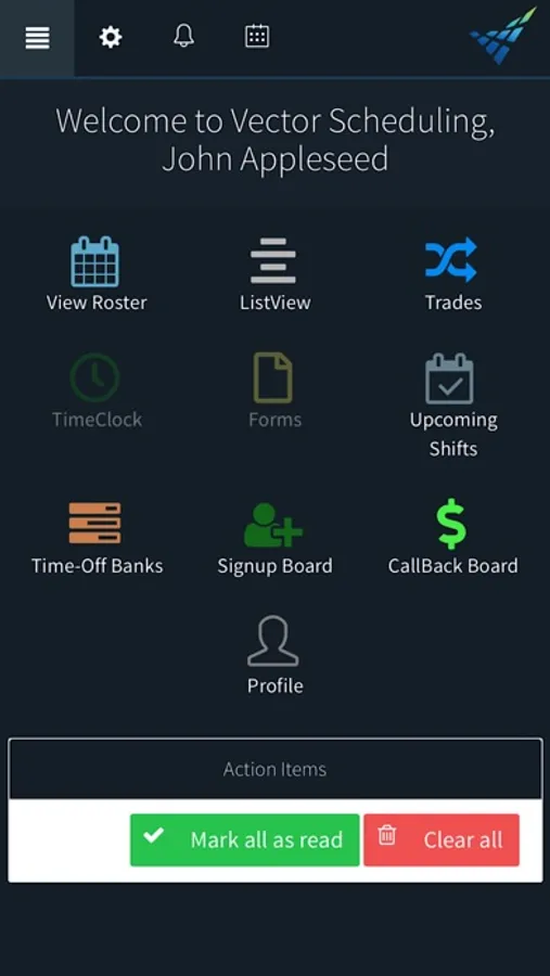 This is the Vector Scheduling mobile application. This application will allow you to receive and respond to callback shifts, send and respond to group notifications, check your work schedule, submit time off and leave requests, submit trade requests, and more. This application requires that your organization be a member of Vector Scheduling.