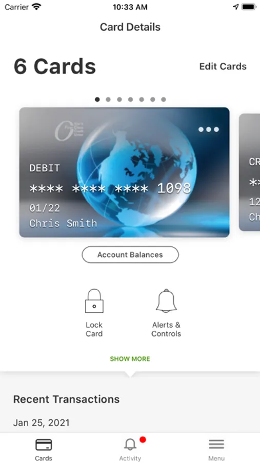 Protect your debit and credit cards by sending you transaction alerts and giving you the ability to define when, where and how your cards are used. Simply download the app to your smartphone, then customize your alert preferences and usage settings to monitor and manage your cards.
