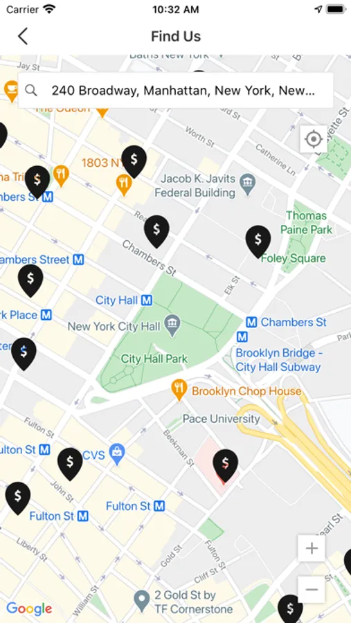 The My Location control can restrict transactions to merchants located within a certain range of your location (using your