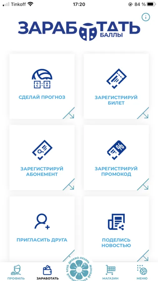 - Обменивай баллы на атрибутику и билеты на домашние матчи ЖВК «Динамо-Ак Барс»;