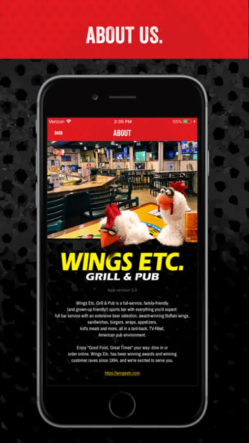 Love Wings Etc.? Download our official Rewards app and activate your account to earn points toward food rewards with in-app to-go orders. Fast, easy, accurate ordering for pickup from your local Wings Etc.!
