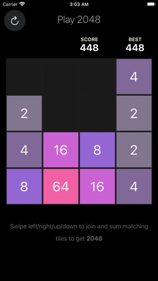 Swipe left / right / up / down to merge matching tiles in order to reach the 2048 tile!
