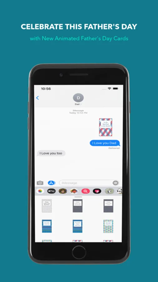Have more than 50+ Stickers of Animated Father's Day Cards available immediately you purchase to start using on iMessage for your next chat.