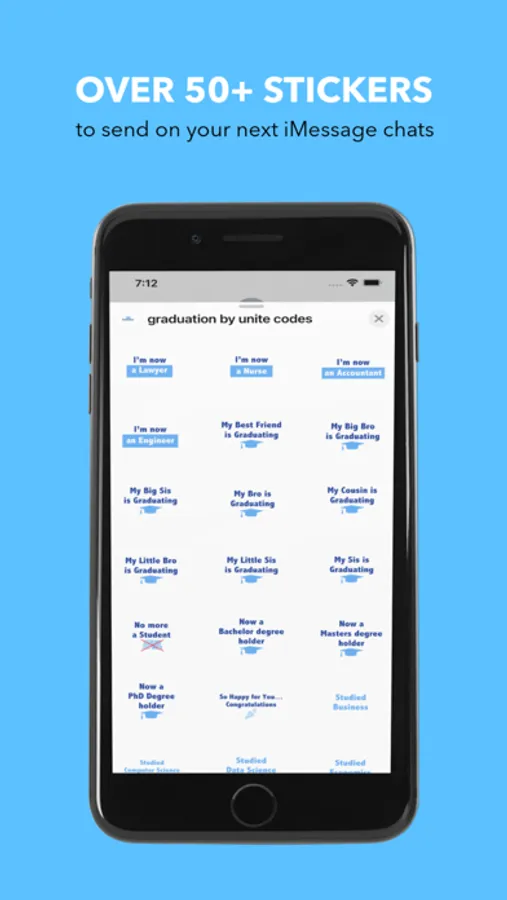 Have more than over 50+ Graduation wishes stickers available immediately you purchase to start using on iMessage for your next chat.