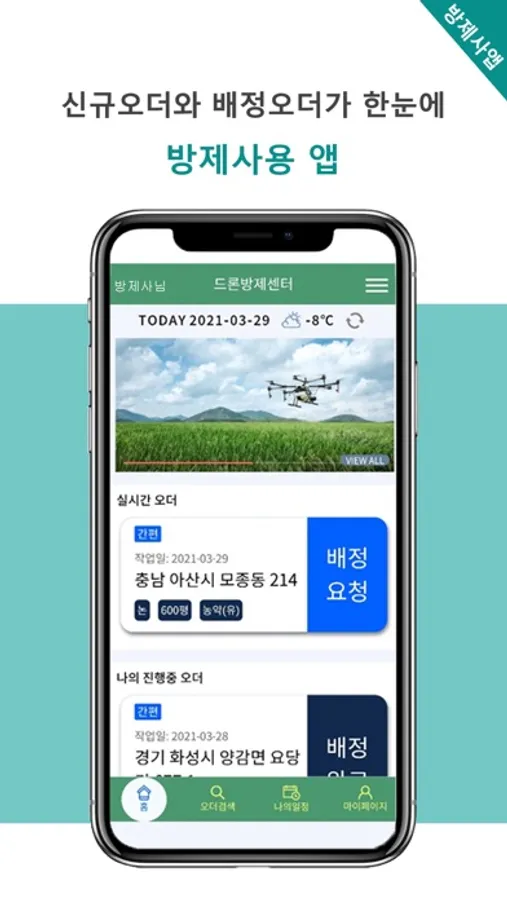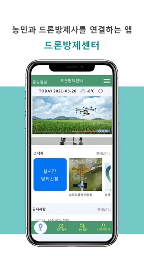 방제가 필요한 농민과 드론방제사라면 누구나 이용할 수 있는 앱으로
