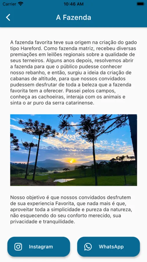Solicite seu café da manhã, veja as atrações disponíveis durante sua estadia, conheça as melhores opções gastronômicas da região e muito mais com o aplicativo da Fazenda Favorita.