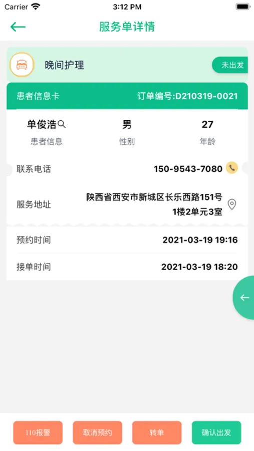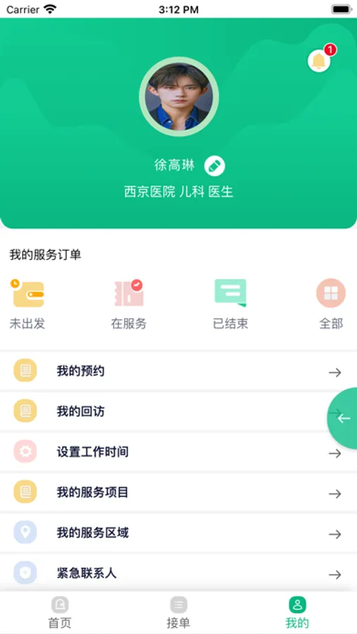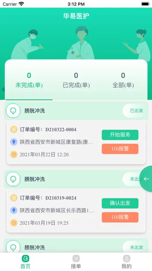 为不方便或不想去医院的患者提供上门一对一的医疗服务,患者可以在线下单,医护人员接单后上门进行医疗服务,服务结束后,患者可对服务进行评价。