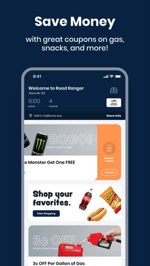 Earn a free drink for simply downloading and registering. The rewards are following in already! Earn 20 points per gallon for first 30 days once you download and register. You earn 3 points for every gallon pumped and 1 point for every dollar spent inside.