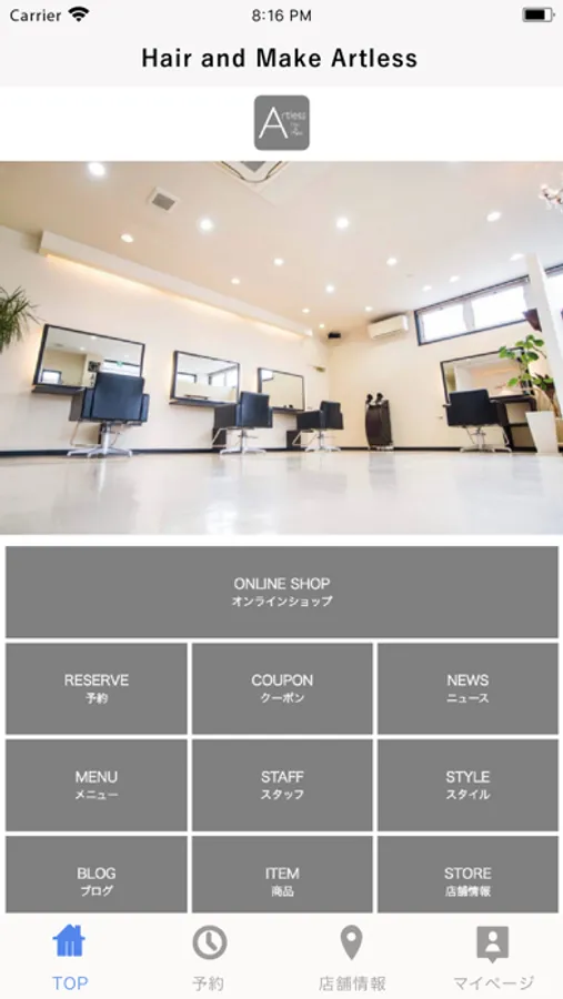 Hair and Make Artless(アートレス)の公式アプリです。