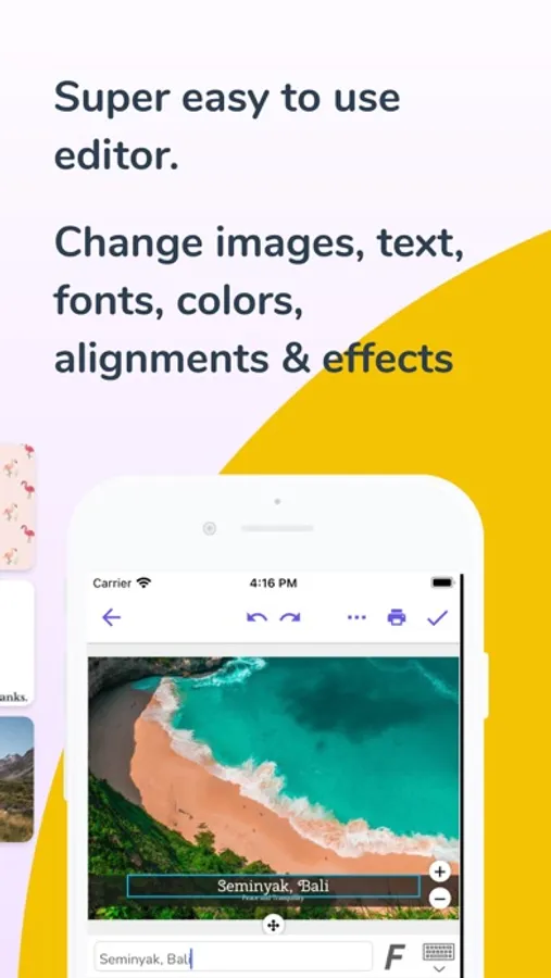 CREATE EASILY: ALL the powerful and easy-to-use editing tools you need such as resize, font change, color change, align, layer order & much more. Edit images, text & icons in any way you want.