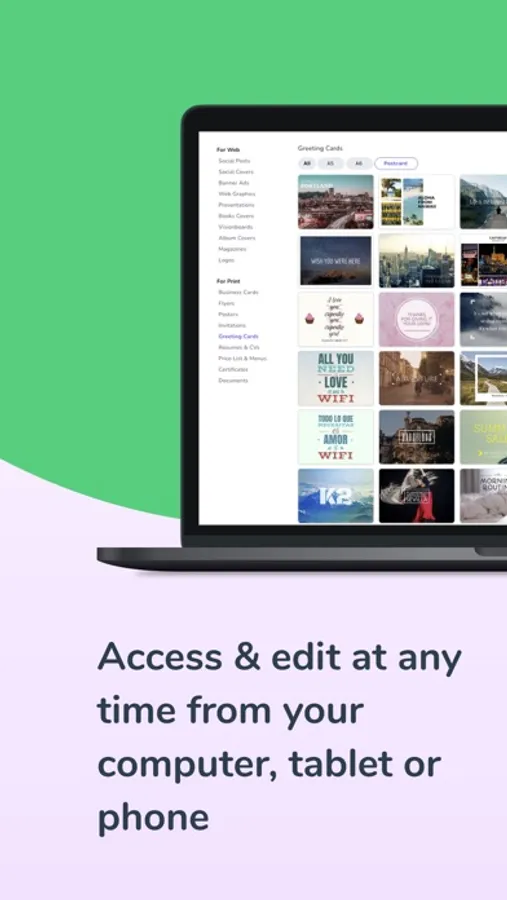 STORE & EDIT AT ANY TIME: Create as many Postcards as you like and store them all for free. They will always be editable from your computer & mobile device with your Desygner account.