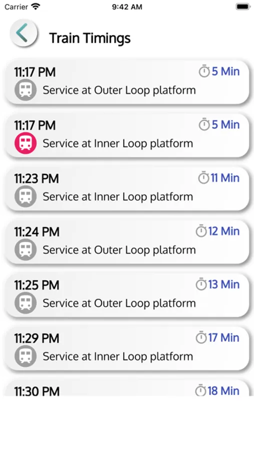 •Timings and Inner or Outer Loop Platform indication so you are always sure and saving your time in your commute.