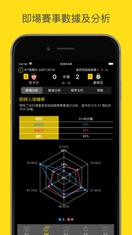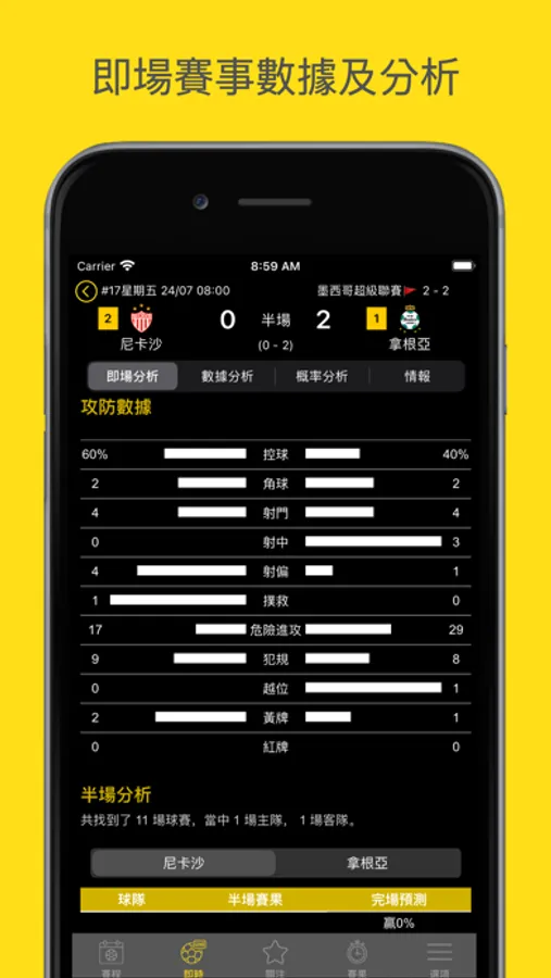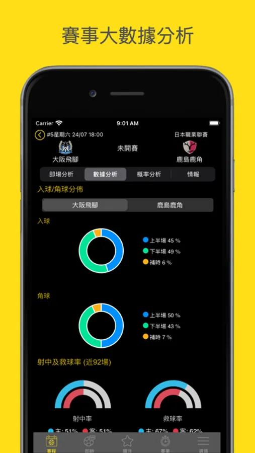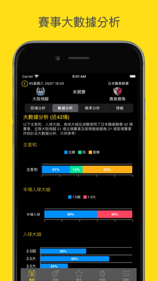 足智大數據使用過萬場賽事結果為你分析即場攻守數據、賽事大數據分析及概率走勢,助你掌握決勝機率。