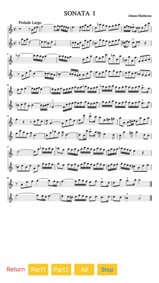 Mattheson's duet sonata practice app. Contains 4 sonatas.