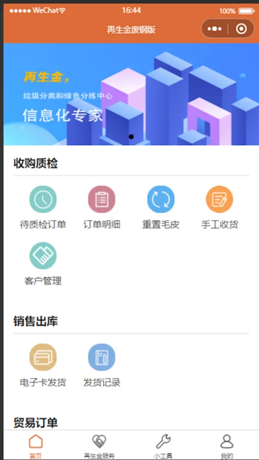 废钢再生金APP是再生金信息管理系统配套的手机端管理软件,用于垃圾分类及绿色分拣中心信息系统的经营管理
