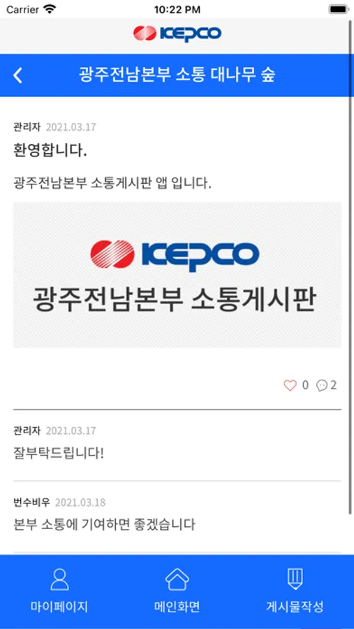 한전 광주전남본부 소통 대나무 숲 Screenshots